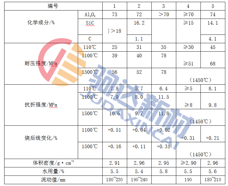常溫耐壓強(qiáng)度是在標(biāo)準(zhǔn)養(yǎng)護(hù)后測(cè)定的。1天耐壓強(qiáng)度一般約為15MPa,7天耐壓強(qiáng)度為40MPa左右,相當(dāng)于烘干耐壓強(qiáng)度;耐火度均大于1790℃,剛玉耐火澆注料的荷重軟化溫度開始點(diǎn)大于1400℃,變形4%時(shí)約為1700℃;抗熱震性,850℃水冷循環(huán)一般大于30次,常溫?zé)釋?dǎo)率約為1.28W(m·K);該澆注料中溫強(qiáng)度略有下降,與其他鋁酸鹽水泥耐火澆注料的基本類同。同時(shí),由于原材料品級(jí)高,雜質(zhì)少,因此具有良好的抗渣性和抗還原性砌體的能力。