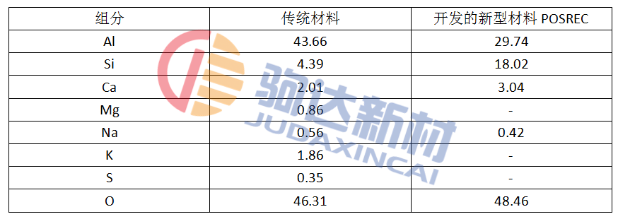根據試驗結果,對傳統的Al2O3-SiC質澆注料(SiC含量5%)、高鋁質澆注料及開發的新型澆注料之間的差異做了比較對比。利用下列參數作為評估的準則:
